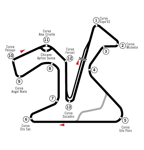 Из аэропорта Хереса по шоссе N-1V мимо Хереса, через 2 км после свернуть в сторону Севильи, очень скоро будут указатели ‘circuito’ и шоссе N382. Из Севильи по шоссе N382 следовать по указателям ‘circuito’.