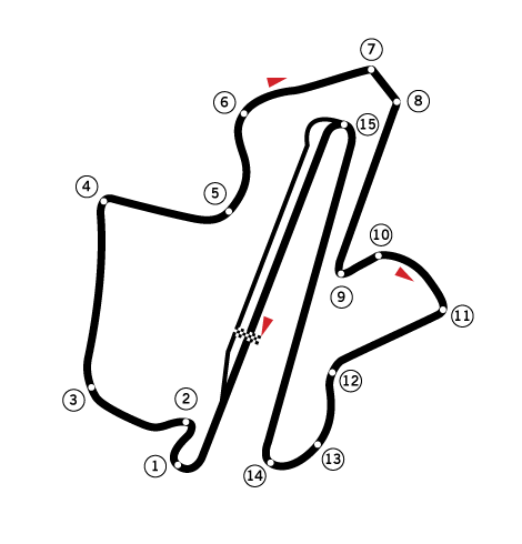 Трасса обладает одной из самых длинных прямых в календаре - 1082 м и широким треком, ориентированным на автогонки (16 м), что предполагает наличие многих траекторий и зон для обгона.